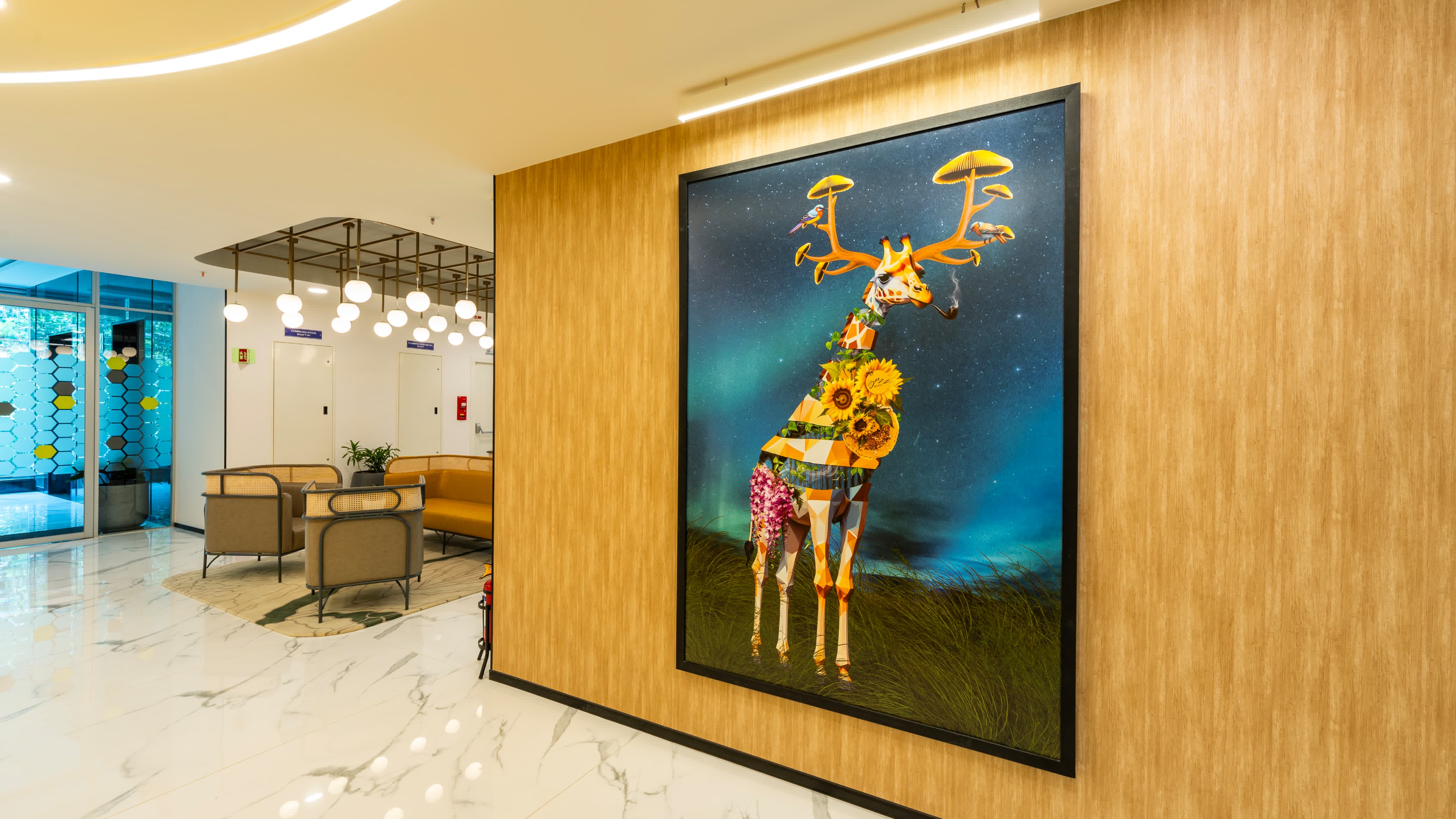 The project involves creating an innovative and visually engaging office workspace design that integrates art and graphics. The design aims to reflect the brand identity while creating an inspiring atmosphere for employees. Through strategic use of color, texture, and visual elements, the workspace is transformed into a dynamic hub for collaboration and innovation.
